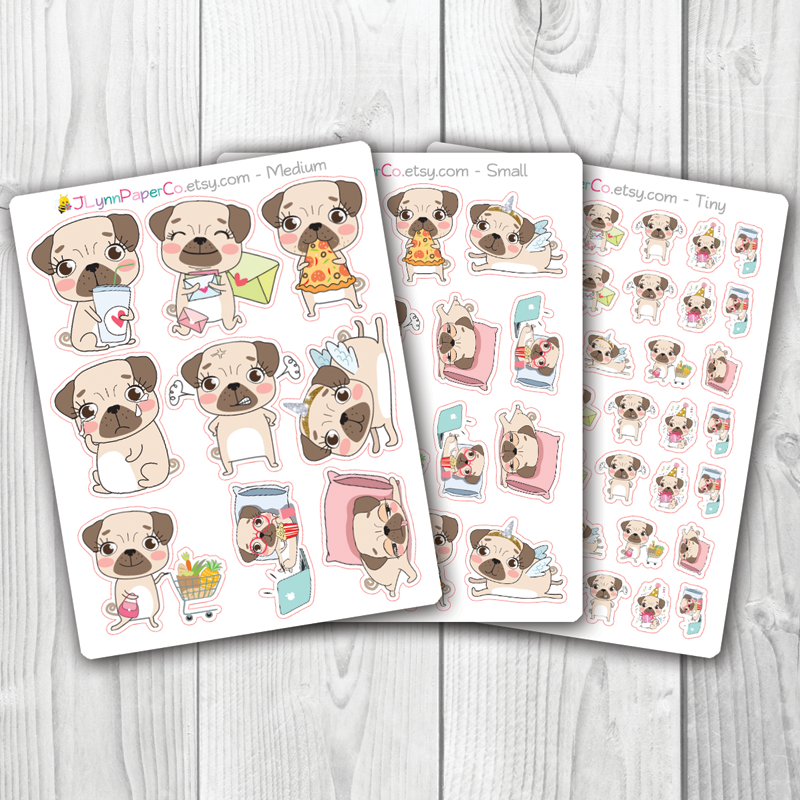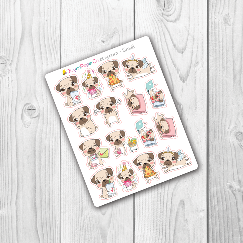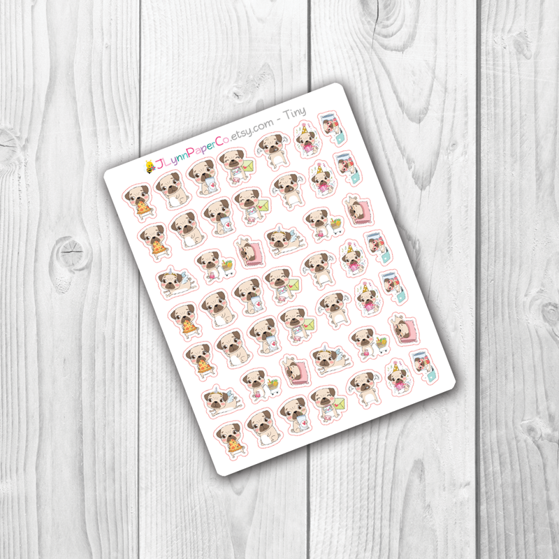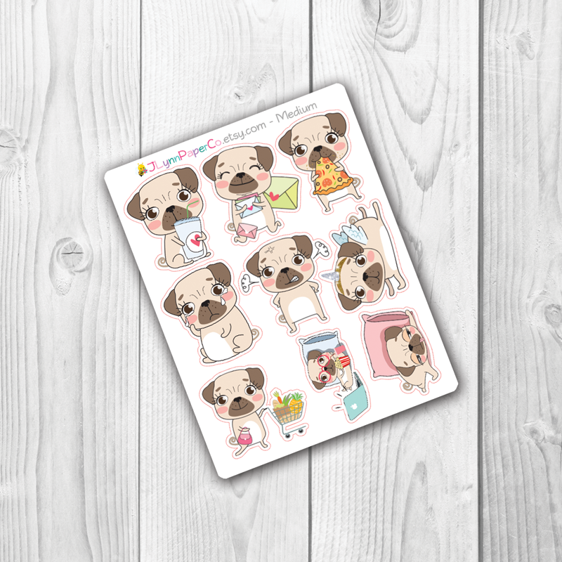 1 sheet of Pug Stickers in the size and paper type of your choice.